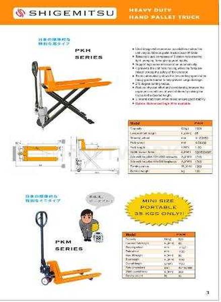 Hand Pallet atau hand lift atau hand truck dan sebagainya merupakan alat bantu produksi yang tiap pabrikan pasti menggunakannya untuk memaksimalkan kerja produksi. Dengan kapasitas 2 ton, 2,5 ton, 3 ton, 4 ton dan 5 ton kami menyediakannya. Ukuran garpu yang type long 685 mm x 1220 mm atau type short 520 mm x 1150 mm. kami menyediakan dengan berbagai merk ternama seperti Dalton, OPK OIC, Nansin, superform, shigemitsu, Endolift, Bishamon, Trusco, Sugico, Oyama, Hippo, Dsb